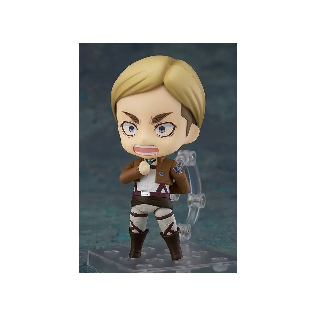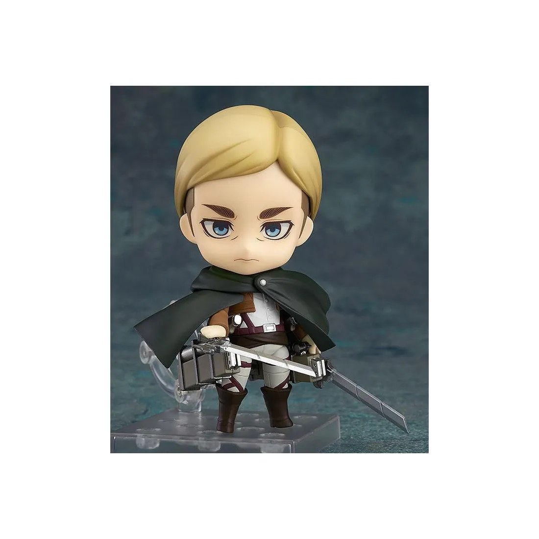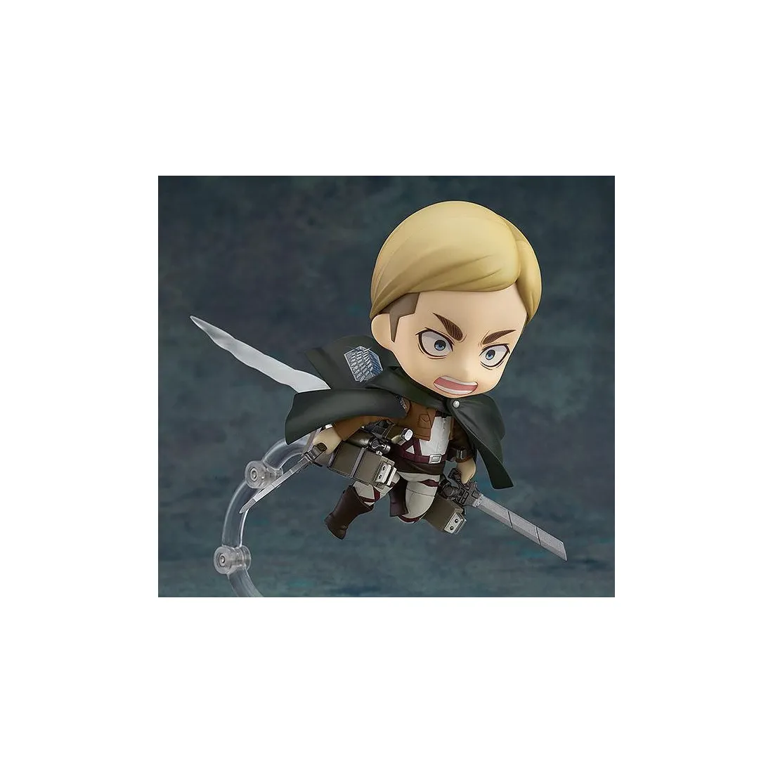 Good Smile Company réédite ici une figurine articulée Nendoroid de personnage phare du manga l’Attaque des Titans. Mesurant 10 cm et fabriquée en PVC, la figurine est livrée avec de nombreux accessoires, y compris les épées utilisées pour lacérer le cou des titans.