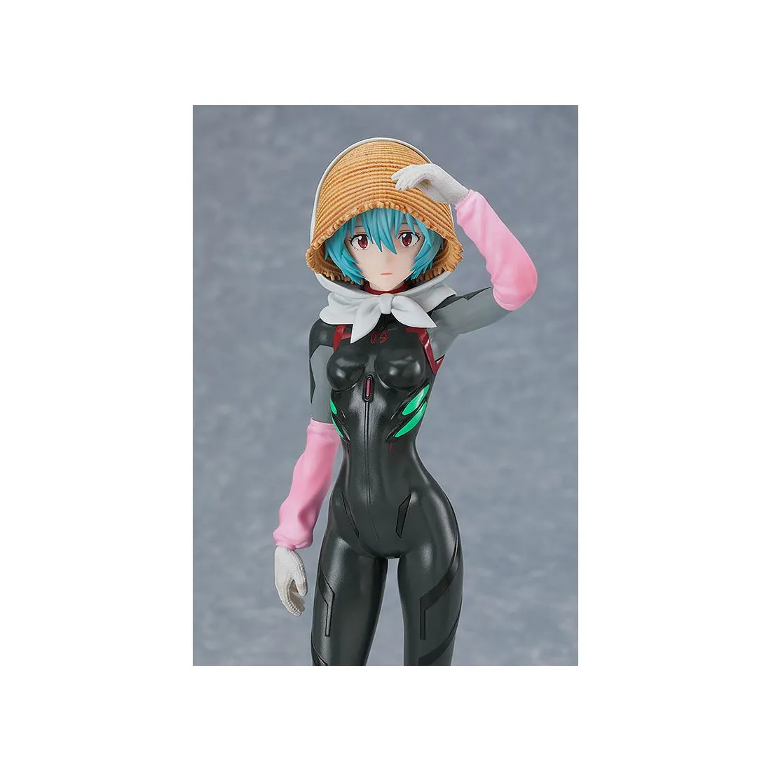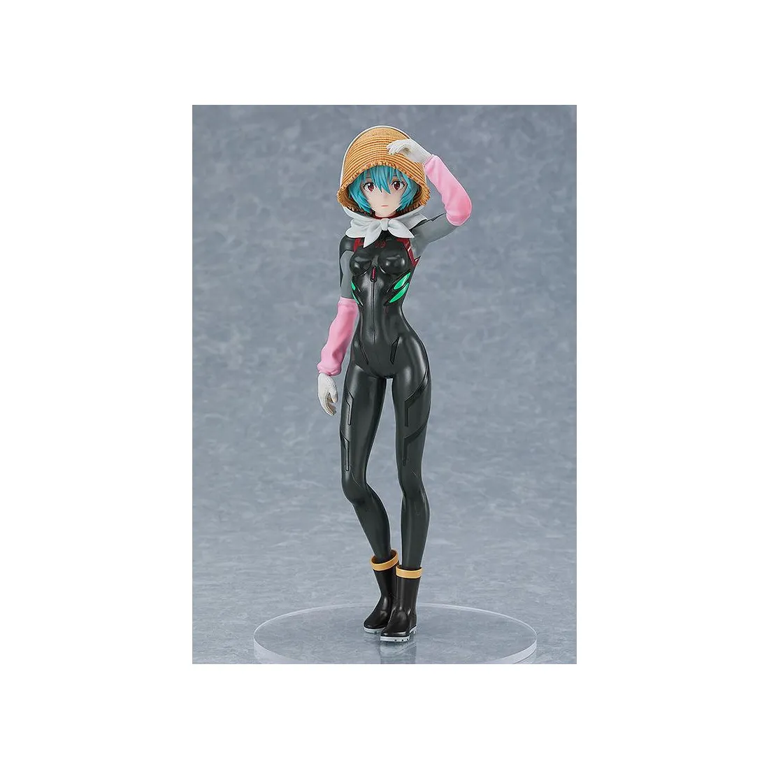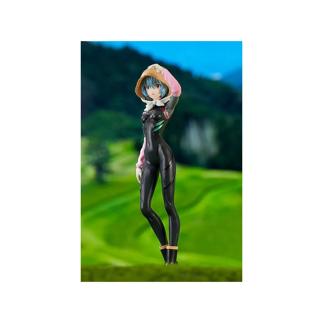 Rei Ayanami est l’un des personnages principaux de l’anime culte Evangelion. Good Smile Company nous propose ici une figurine en PVC de Rei Ayanami dans une version fermière avec une coiffe de paille, en plus de son armure de combat.